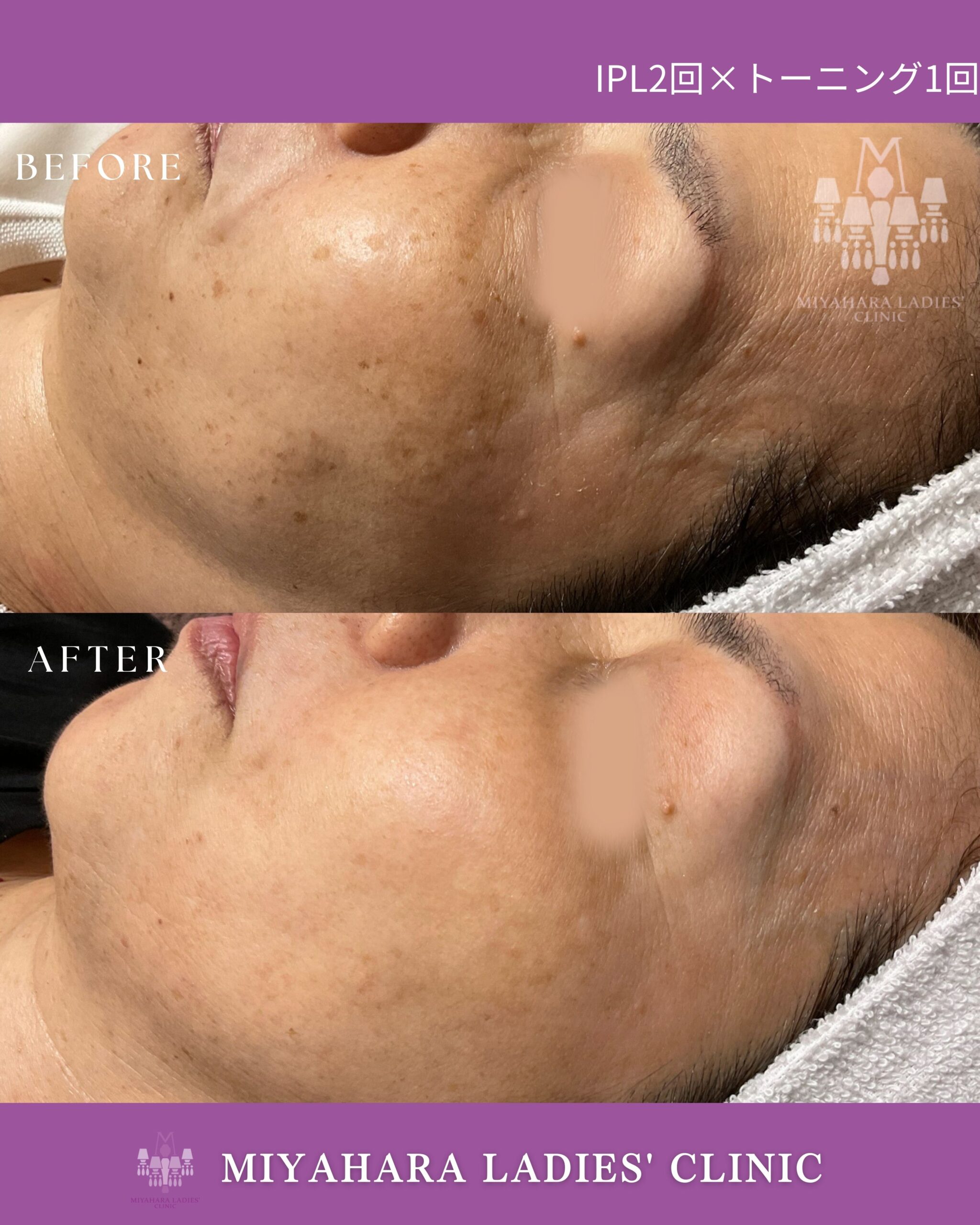 一度で劇的な変化が見込める治療ではなく、複数回にわたり照射を継続することで徐々にシミやくすみのお悩み解消に導きます。みやはらレディースクリニックでは1回、5回プランをご用意しております。