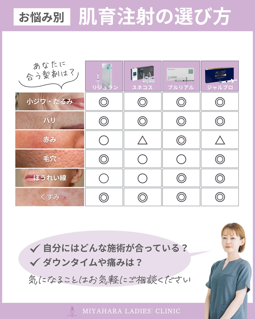 みやはらレディースクリニックでは、プルリアル以外にもさまざまな肌育注射をご用意しています。