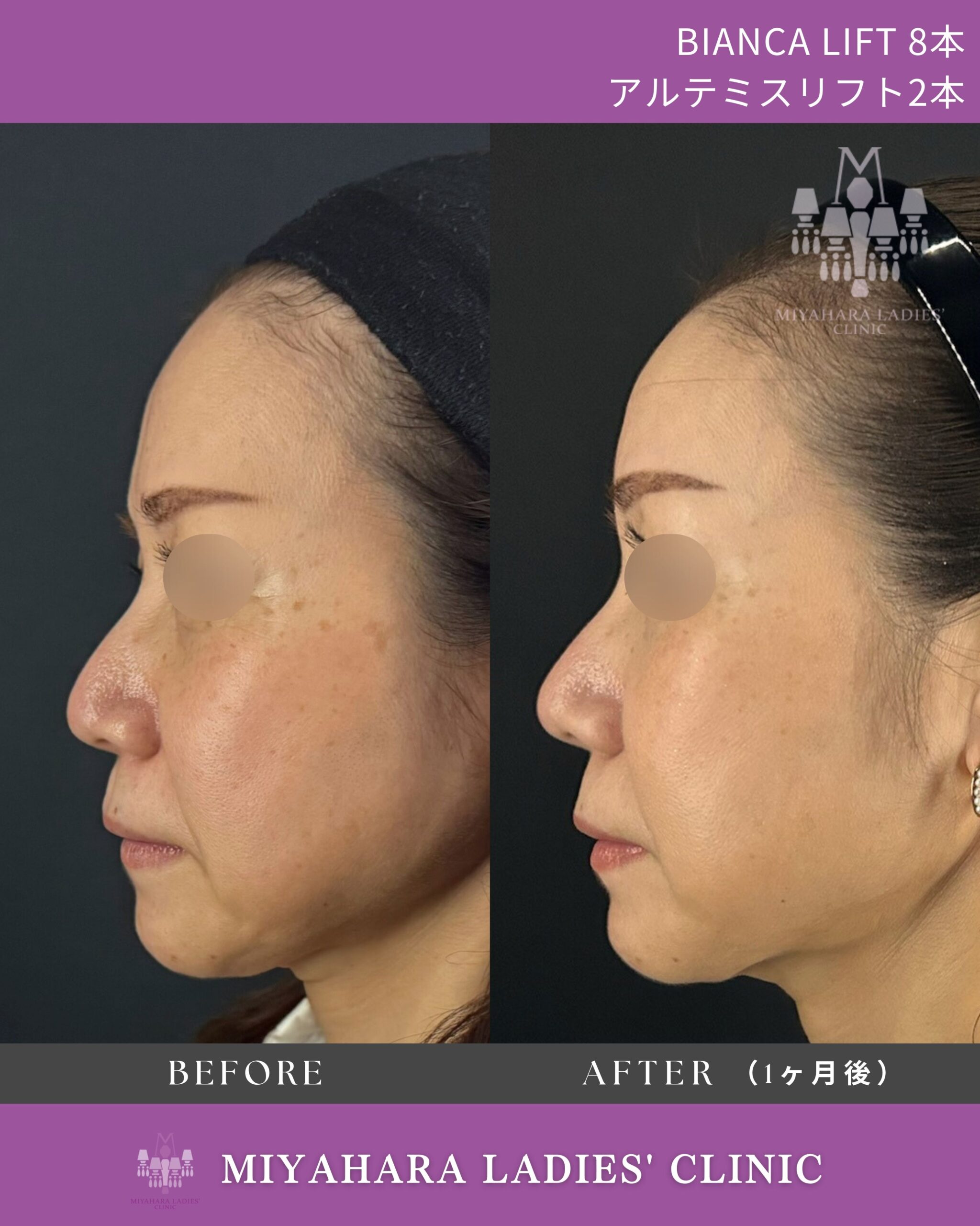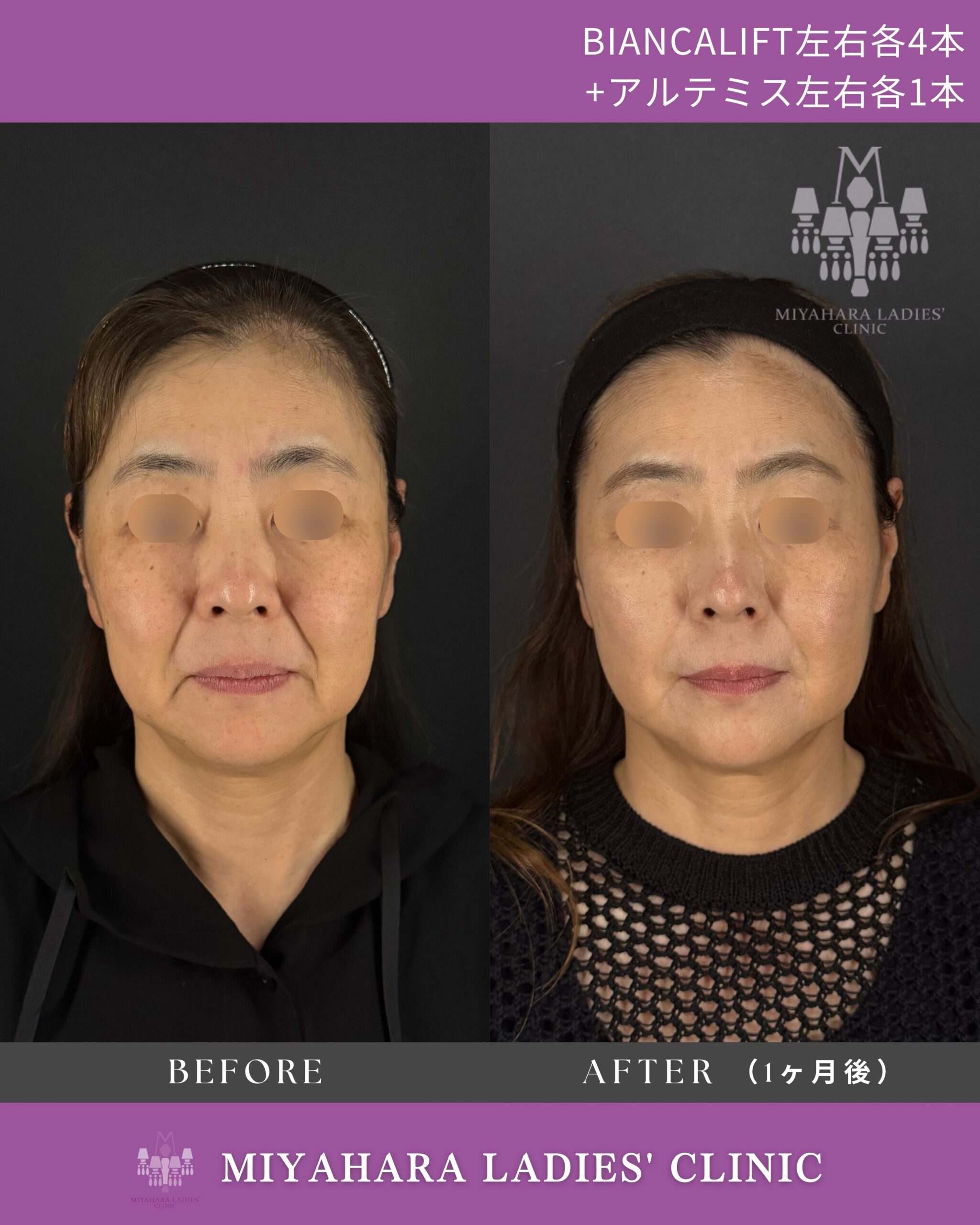施術期間・回数 1回(ビアンカリフト左右各4本、アルテミスリフト左右各1本)