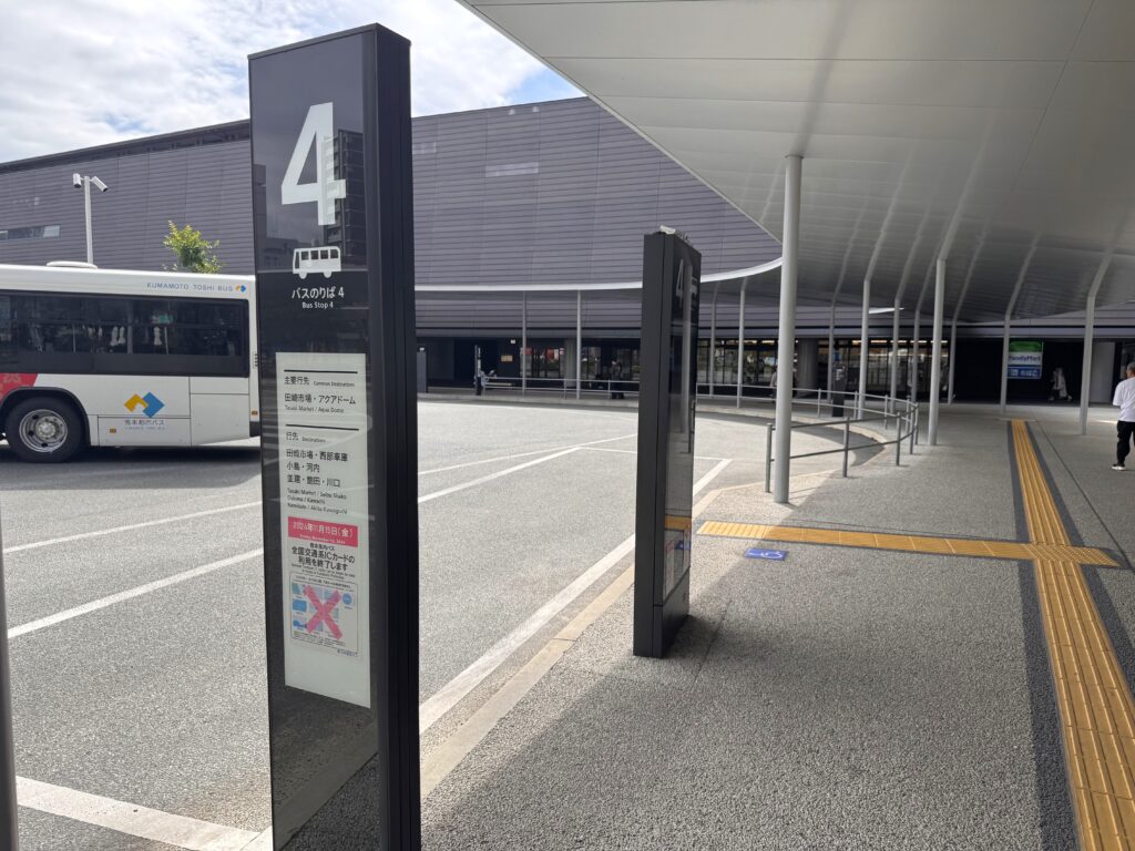 在熊本站前的公車站搭乘往「西部車庫(Seibu-shako)」或「小天溫泉(Oama-onsen)」方向的公車。