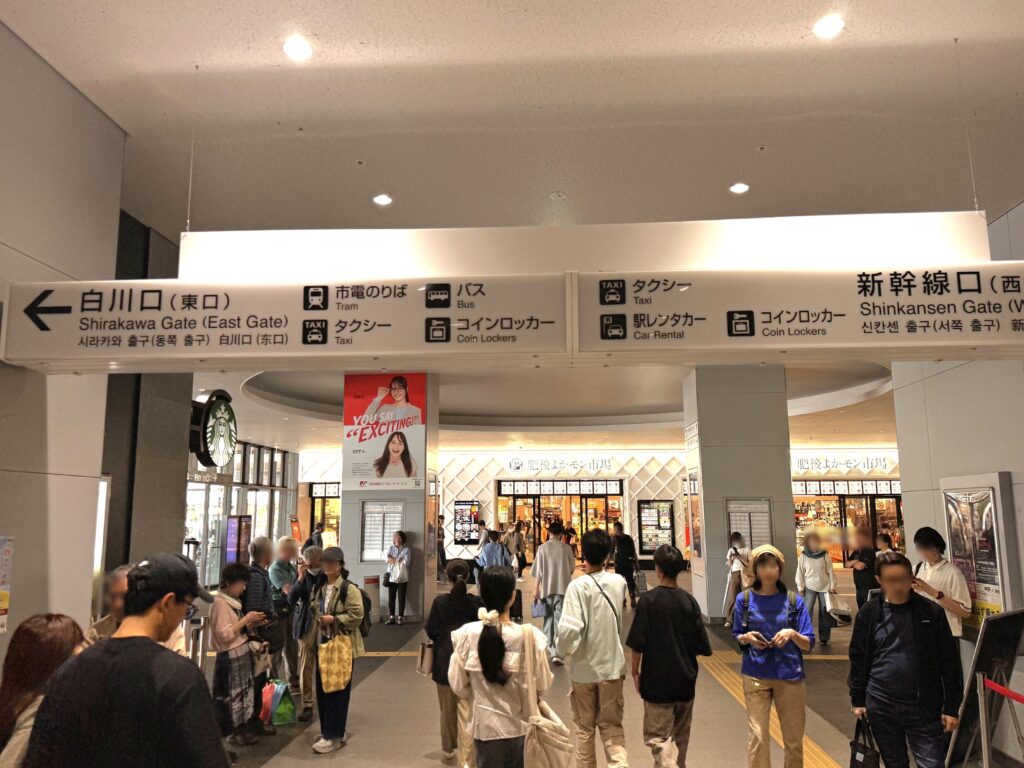 抵達JR熊本站後,請前往白川口(Shirakawa-guchi)(東出口)。