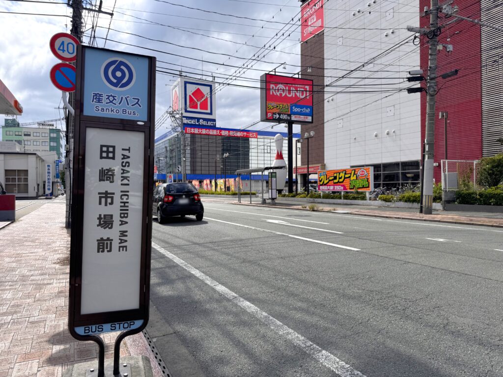 請在「田崎市場前(Tasaki Ichiba-mae)」公車站下車。「田崎市場前」是從熊本站前搭車後的第4站。